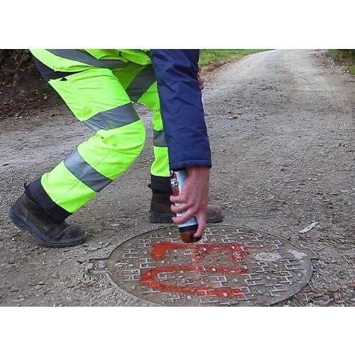 La bombe de peinture chantier non fluorescente Promaker s’utilise pour divers travaux de marquage/repérage : voiries, terrassement, canalisations, constructions, installations électriques. Grâce à un excellent pouvoir couvrant cette peinture de marquage non fluorescente permet de masquer efficacement les marquages. Le Promaker 500 ml est doté du capot de sécurité «TP» breveté Soppec.