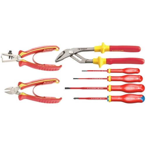 Ce jeu de pinces et tournevis 1000 Vde Facom est un pack d’outils professionnels conçus pour les vissages, les dévissages, les dénudages et d’autres.
