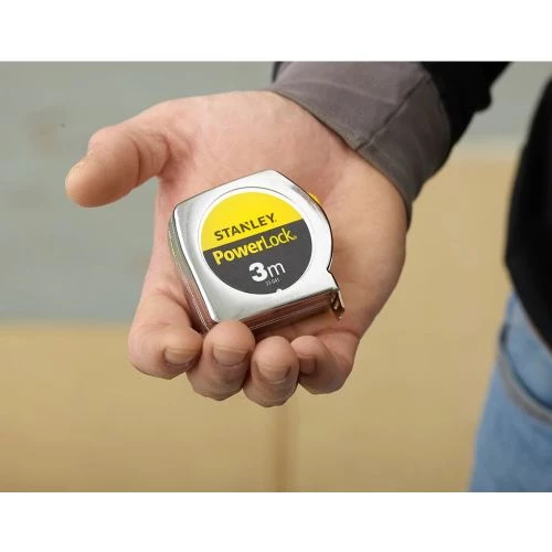 Cette mesure PowerLock Classic Métal de Stanley est fait d’un revêtement Mylar haute protection et anti-abrasion sur la totalité du ruban, pour une durée de vie multipliée par 10 par rapport à un ruban traditionnel. Elle est équipée d’un boîtier métal chromé très résistant aux chocs avec un blocage du ruban et retour automatique. Elle permet une mesure intérieure par addition de 5 cm. Cet outil est muni d’un crochet avec position du zéro réelle pour mesures intérieures et extérieures et 3 rivets offrant une bonne résistance à l’arrachement ainsi qu’une agrafe pour port à la ceinture.