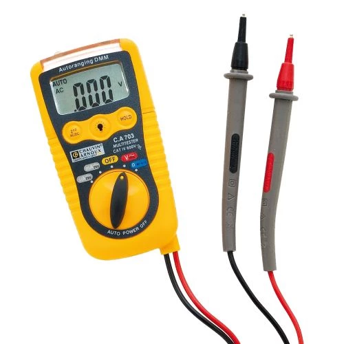 Ce multimètre numérique C.A 703 de Chauvin Arnoux est doté d’une puissance 600 V. Avec leur petite taille et leurs pointes de touche solidaires, ils peuvent être placés n’importe où.