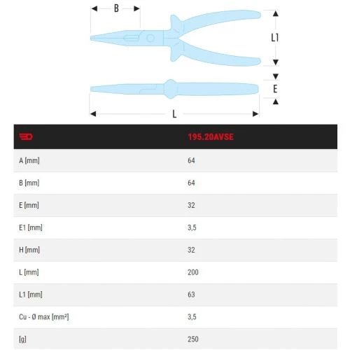 Cette pince à becs demi-ronds longs isolées Facom 1000 volts série VSE 195.20AVSE est un outil robuste et pratique.