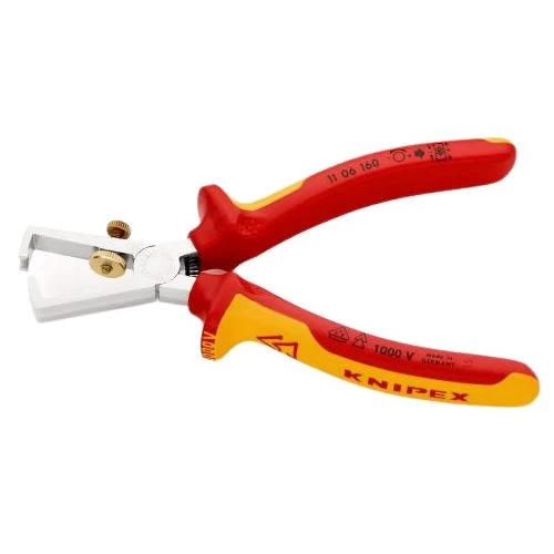 La pince à dénuder avec ressort d’ouverture Knipex 1000 V est destinée pour dénuder les matériaux isolants en plastique et en caoutchouc. Elle coupe l’isolant du câble sans abîmer le conducteur ni les torons. Aussi, elle dispose d’un écrou moleté et d’un contre-écrou permettant de régler simplement le diamètre du câble ou du fil. Elle est fabriquée à partir d’acier à outils spécial, forgé et trempé.