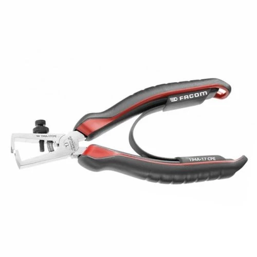 Cette pince à dénuder 194A.17CPE de Facom possède une vis de réglage ajustable avec contre-écrou pour un usage polyvalent.