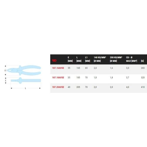 | Longueur de la pince (en mm) | 165 Millimètre, 185 Millimètre, 205 Millimètre |