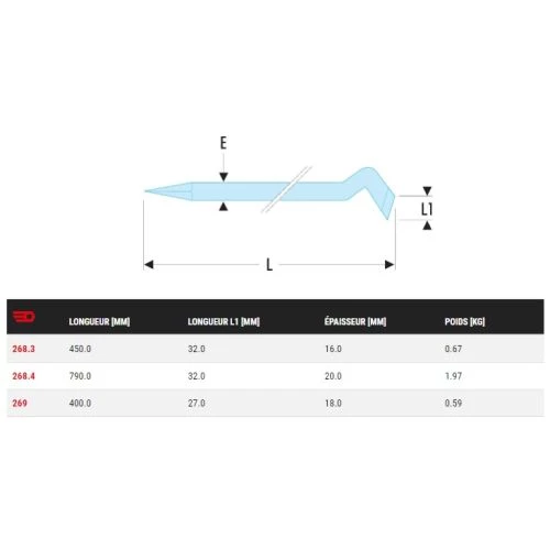 - Modèle forgé avec une extrémité broche et une extrémité palette large et fine