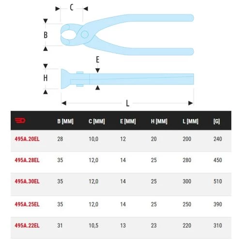 Cette tenaille type russe 495A est conçue avec des branches semi-rigides et arrondies pour une rotation rapide dans la main.