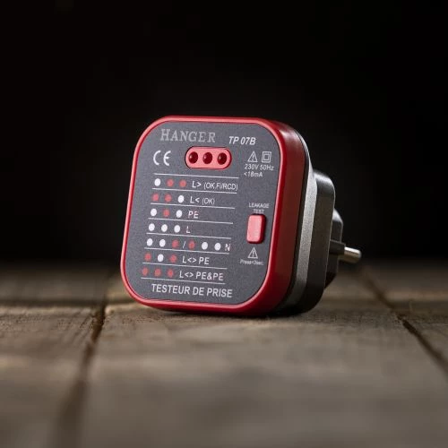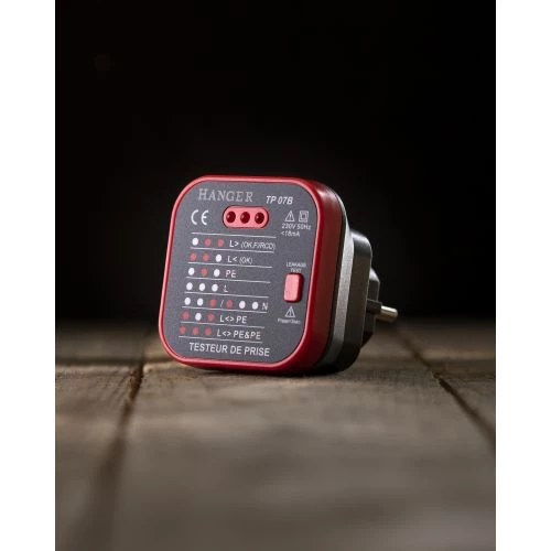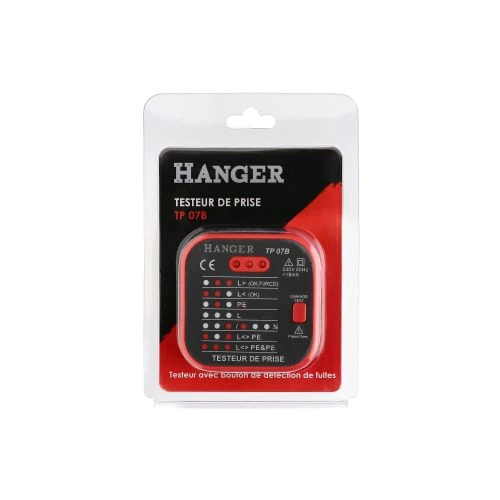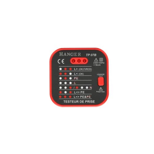 Ce testeur de prise Hanger vous permet de contrôler l’absence de Terre (PE), l’absence ou présence de Phase (L), l’absence de Neutre (N) et l’inversion Phase/Terre. Avec ce testeur de prise, vous pourrez également effectuer le test RCD grâce à son bouton de détection de fuite.